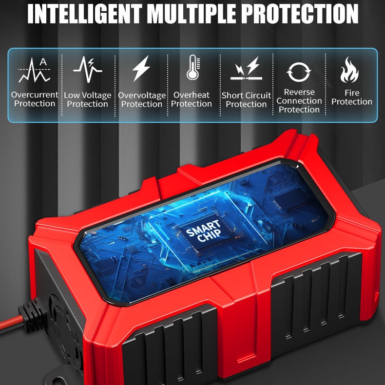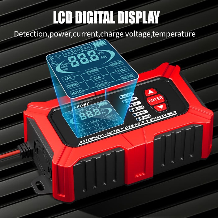 【LARGE LCD DISPLAY VISUALIZED CHARGING】Incarcarea automata va protejeaza bateria de supraincarcare.Acest incarcator de baterie trickle detine protectie la supratensiune / supracurent, protectie la polaritate inversa / protectie la scurtcircuit, material ignifug, protectie la supraincalzire.Deci, puteti lasa incarcatorul conectat la baterie pe termen nelimitat, intra automat in incarcare prin insiruire dupa ce este complet incarcat.