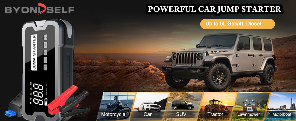 | DE CE ALEGEA BYONDSELF® CAR STARTER? 【Sursa de Pornire de Urgenta 4000A】Starter auto 4 in 1 pentru masina cu compresor de aer poate porni de urgenta majoritatea vehiculelor de 12 V, Potrivit pentru masini cu pentru 5.0L motor benzina/4.0L diesel, Atunci cand masina dvs. se Defecteaza pe drum,Poate porni intr-un timp scurt bateria interna va genera un curent de varf de pana la 4000A pentru a va trezi motorul defect fortati masina sa reporneasca, Incarcand pana la Poate fi pornit de 30 de ori, Potrivit pentru masini de 12 V, Motociclete, Barci, ATV-uri, UTV-uri, SUV-uri, Barci etc, Potrivit pentru calatoriile si urgentele dvs 【Sursa de Alimentare Mobila de Mare Capacitate 24000mAh】Starter auto multifunctional nu este doar un pachet de baterii de pornire de urgenta, Este un starter auto portabil cu o baterie de 24000 mAh, Este echipat cu 1 port de iesire de tip C si 2 iesiri USB de incarcare rapida 5V/2A QC3.0,Porturi , Ceea ce il face un incarcator portabil ideal pentru diverse dispozitive, Cum ar fi telefoane, Tablete si MacBook-uri, Trebuie doar sa porniti comutatorul ON/OFF, sa Faceti clic pe butonul de pornire si sa conectati cablul USB,Dimensiunea demarorului auto este de 20,9×9×6CM,Ceea ce este convenabil pentru transportul zilnic 【Afisaj Digital Compresor de Aer Fara Fir】Starter auto portabil cu afisaj LCD are un afisaj LED foarte mare si un design intuitiv,Setarea presiunii pentru a evita presiunea excesiva ,Starter auto multifunctional portabil are 3 tipuri de duze de aer care pot fi inlocuite la nevoie, Este potrivit pentru Masini motociclete, Biciclete,Iar modul de umflare poate fi reglat in orice moment in timpul procesului de umflare, Poate fi folosit si in mod normal in medii extreme (-10°), Oferindu-va liniste sufleteasca 【3 Moduri de Iluminare LED de Urgenta】Starter auto multifunctional de urgenta este, de Asemenea, Echipat cu lumina de urgenta LED, Care ofera 3 moduri de iluminare (Normal, Stroboscopic, SOS) in intuneric si situatii de urgenta si accepta 48 de ore de iluminare de inalta luminozitate,Aparatul are diverse protectii precum suprasarcina, Supracurent, Scurtcircuit, Conexiune inversa, Antiscantei,Incarcare inversa, etc, Permitandu-ti sa pornesti masina usor si rapid 【Tehnologie de Utilizare Ultra Sigura】Acest starter auto portabil de masina are mai mult de 10 protectii, Supraincarcare, Supracurent, Scurtcircuit, Conexiune inversa, Temperatura scazuta, Temperatura ridicata, Supratensiune, Suprasarcina, Antiscanteie, Incarcare inversa, permitandu-va sa operati usor si rapid in situatii extreme Porniti masina in conditii ambientale (-10°), Oferindu-va liniste sufleteasca, Chiar si incepatorii pot opera cu incredere |